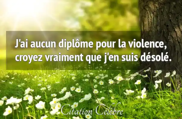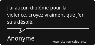 J'ai aucun diplôme pour la violence, croyez vraiment que j'en suis désolé.
