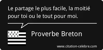 Proverbe  Breton Moi : Le partage le plus facile, la moitié pour toi ou...