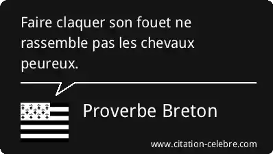 Proverbe  Breton Chevaux : Faire claquer son fouet ne rassemble pas les chevaux peureux....