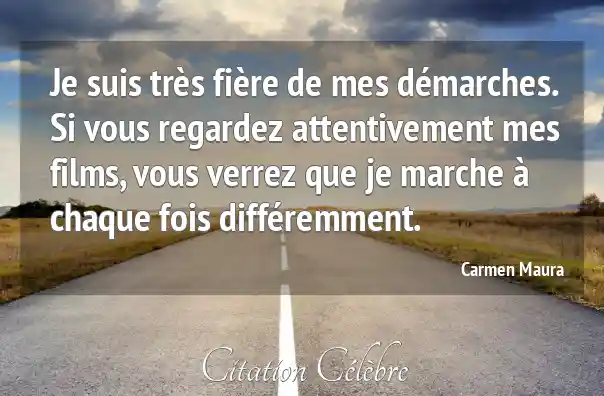 Je suis très fière de mes démarches. Si vous regardez attentivement mes films, vous verrez que je marche à chaque fois différemment.