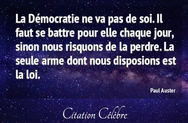 La Démocratie ne va pas de soi. Il faut se battre pour elle chaque jour, sinon nous risquons de la perdre. La seule arme dont nous disposions est la loi.