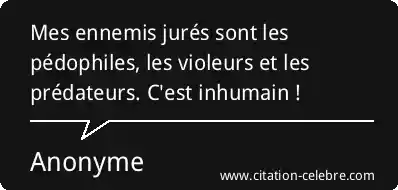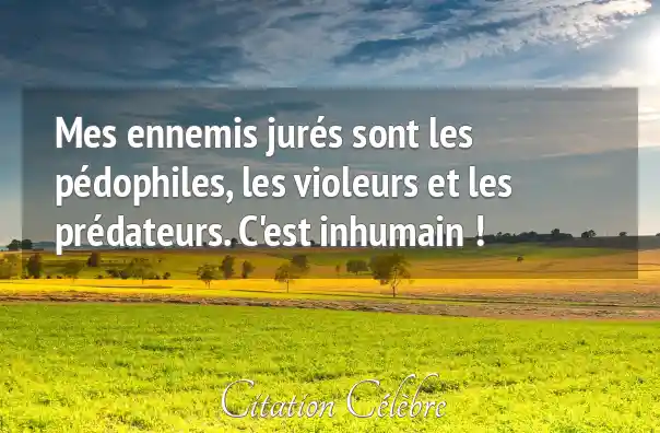 Mes ennemis jurés sont les pédophiles, les violeurs et les prédateurs. C'est inhumain !