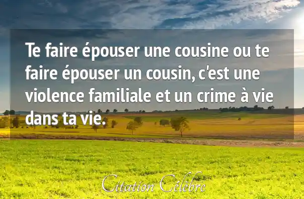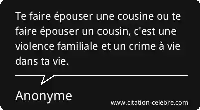 Te faire épouser une cousine ou te faire épouser un cousin, c'est une violence familiale et un crime à vie dans ta vie.