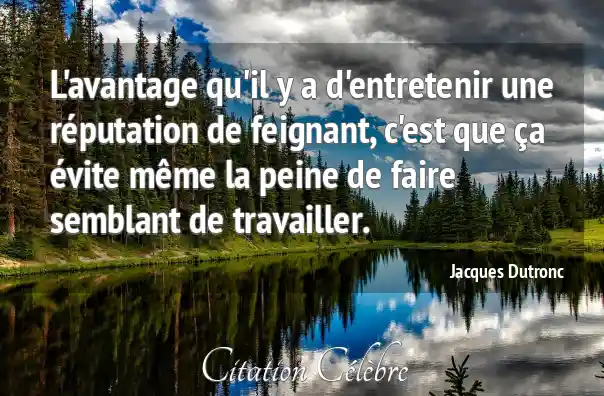 L'avantage qu'il y a d'entretenir une réputation de feignant, c'est que ça évite même la peine de faire semblant de travailler.