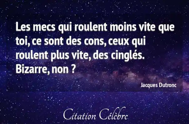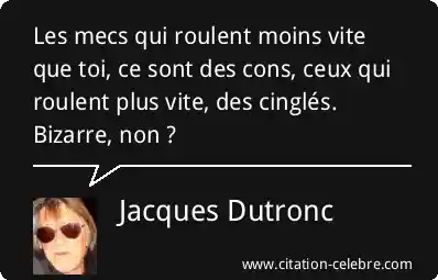 Les mecs qui roulent moins vite que toi, ce sont des cons, ceux qui roulent plus vite, des cinglés. Bizarre, non ?