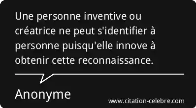 Une personne inventive ou créatrice ne peut s'identifier à personne puisqu'elle innove à obtenir cette reconnaissance.