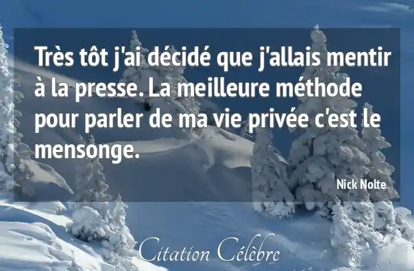 Très tôt j'ai décidé que j'allais mentir à la presse. La meilleure méthode pour parler de ma vie privée c'est le mensonge.