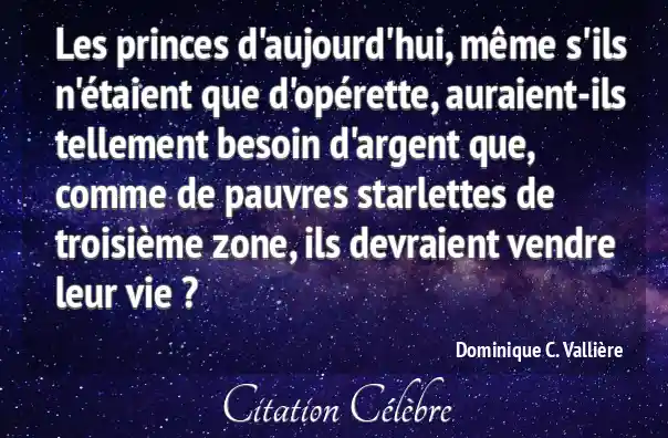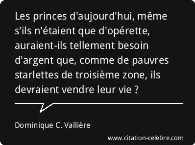 Les princes d'aujourd'hui, même s'ils n'étaient que d'opérette, auraient-ils tellement besoin d'argent que, comme de pauvres starlettes de troisième zone, ils devraient vendre leur vie ?