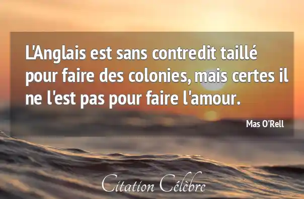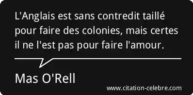 L'Anglais est sans contredit taillé pour faire des colonies, mais certes il ne l'est pas pour faire l'amour.