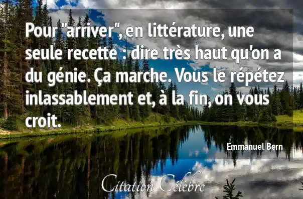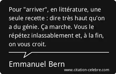 Pour "arriver", en littérature, une seule recette : dire très haut qu'on a du génie. Ça marche. Vous le répétez inlassablement et, à la fin, on vous croit.