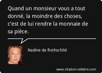 Quand un monsieur vous a tout donné, la moindre des choses, c'est de lui rendre la monnaie de sa pièce.