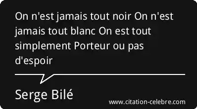 On n'est jamais tout noir On n'est jamais tout blanc On est tout simplement Porteur ou pas d'espoir