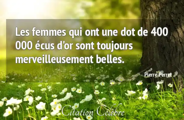 Les femmes qui ont une dot de 400 000 écus d'or sont toujours merveilleusement belles.