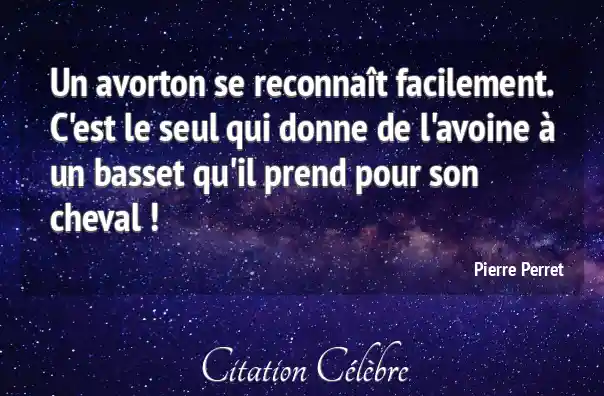 Un avorton se reconnaît facilement. C'est le seul qui donne de l'avoine à un basset qu'il prend pour son cheval !