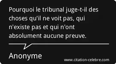 Pourquoi le tribunal juge-t-il des choses qu'il ne voit pas, qui n'existe pas et qui n'ont absolument aucune preuve.