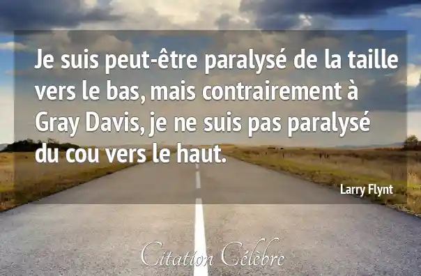 Je suis peut-être paralysé de la taille vers le bas, mais contrairement à Gray Davis, je ne suis pas paralysé du cou vers le haut.