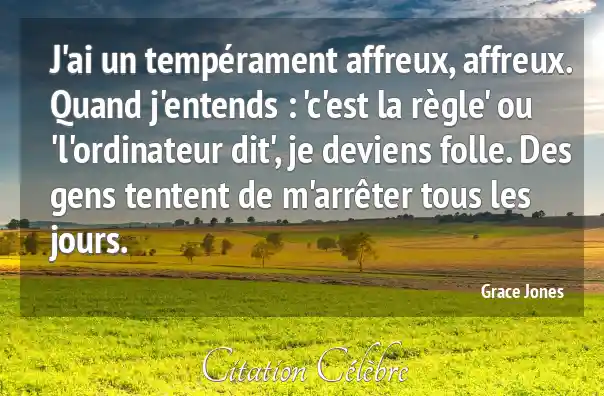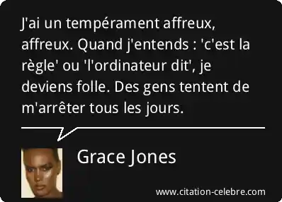 J'ai un tempérament affreux, affreux. Quand j'entends : 'c'est la règle' ou 'l'ordinateur dit', je deviens folle. Des gens tentent de m'arrêter tous les jours.