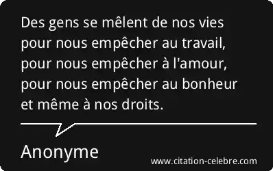 Des gens se mêlent de nos vies pour nous empêcher au travail, pour nous empêcher à l'amour, pour nous empêcher au bonheur et même à nos droits.