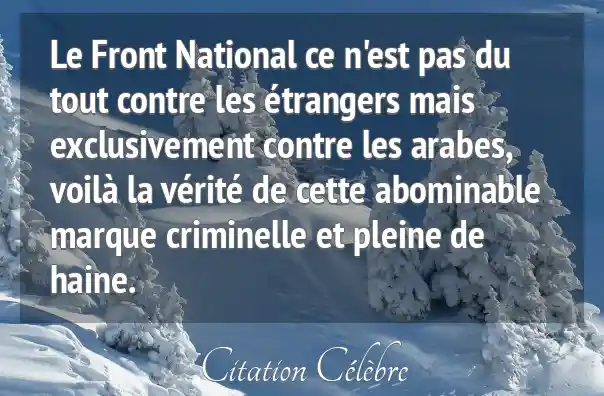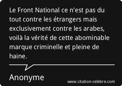 Le Front National ce n'est pas du tout contre les étrangers mais exclusivement contre les arabes, voilà la vérité de cette abominable marque criminelle et pleine de haine.