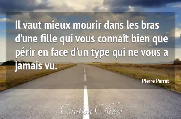 Il vaut mieux mourir dans les bras d'une fille qui vous connaît bien que périr en face d'un type qui ne vous a jamais vu.