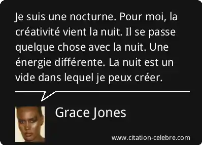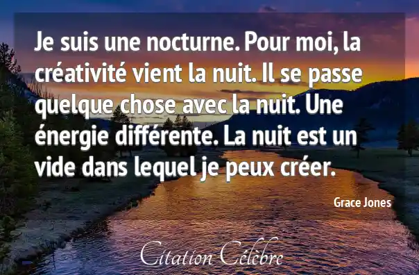 Je suis une nocturne. Pour moi, la créativité vient la nuit. Il se passe quelque chose avec la nuit. Une énergie différente. La nuit est un vide dans lequel je peux créer.