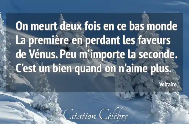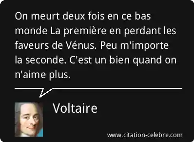 On meurt deux fois en ce bas monde La première en perdant les faveurs de Vénus. Peu m'importe la seconde. C'est un bien quand on n'aime plus.