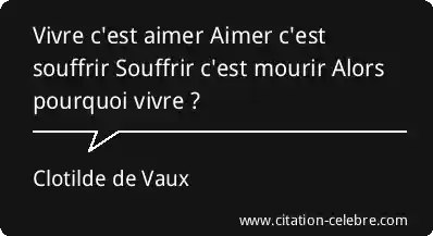 Vivre c'est aimer Aimer c'est souffrir Souffrir c'est mourir Alors pourquoi vivre ?