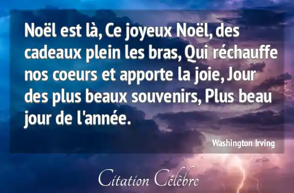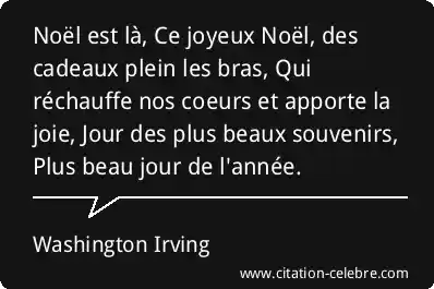 Noël est là, Ce joyeux Noël, des cadeaux plein les bras, Qui réchauffe nos coeurs et apporte la joie, Jour des plus beaux souvenirs, Plus beau jour de l'année.