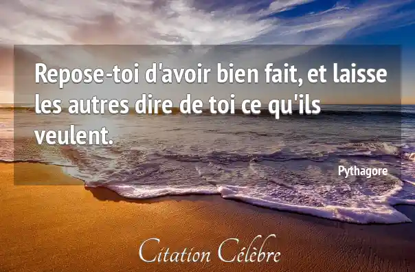 Repose-toi d'avoir bien fait, et laisse les autres dire de toi ce qu'ils veulent.