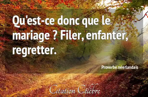 Qu'est-ce donc que le mariage ? Filer, enfanter, regretter.