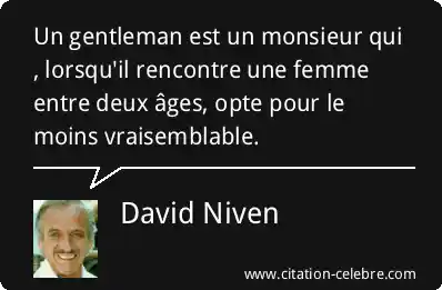 Un gentleman est un monsieur qui , lorsqu'il rencontre une femme entre deux âges, opte pour le moins vraisemblable.