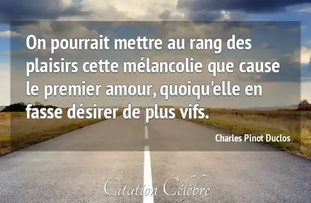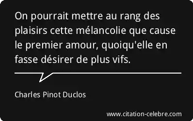 On pourrait mettre au rang des plaisirs cette mélancolie que cause le premier amour, quoiqu'elle en fasse désirer de plus vifs.