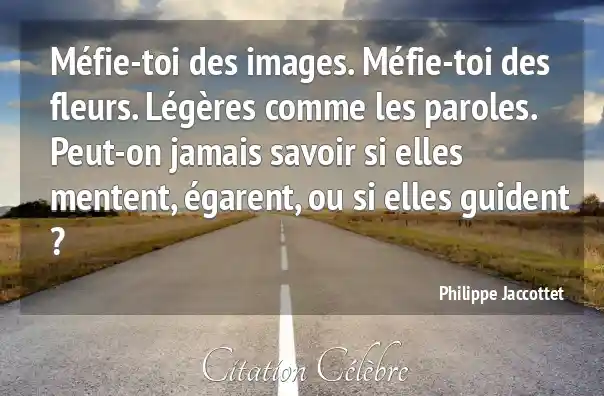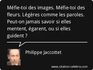 Méfie-toi des images. Méfie-toi des fleurs. Légères comme les paroles. Peut-on jamais savoir si elles mentent, égarent, ou si elles guident ?