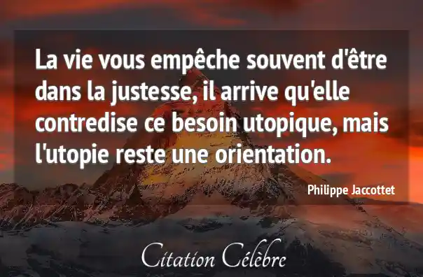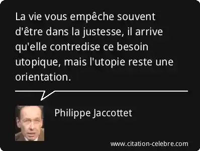 La vie vous empêche souvent d'être dans la justesse, il arrive qu'elle contredise ce besoin utopique, mais l'utopie reste une orientation.