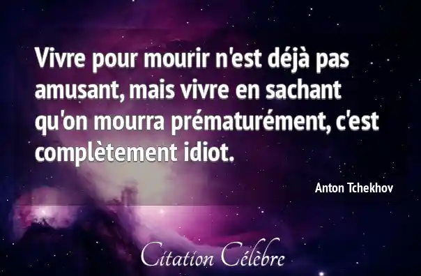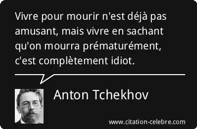 Vivre pour mourir n'est déjà pas amusant, mais vivre en sachant qu'on mourra prématurément, c'est complètement idiot.
