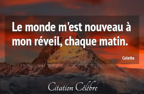 Le monde m'est nouveau à mon réveil, chaque matin.