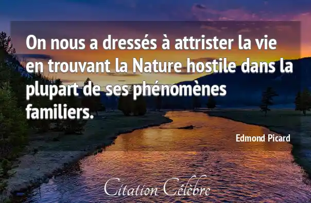On nous a dressés à attrister la vie en trouvant la Nature hostile dans la plupart de ses phénomènes familiers.