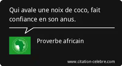Au sens littéral, ce proverbe évoque l'acte improbable d'avaler une noix de coco entière, fruit de grande taille et de texture très dure. La seconde partie, « fait confiance en son anus », fait référence à l'étape finale du processus digestif, suggérant la nécessité d'une confiance absolue en sa capacité à gérer une conséquence potentiellement douloureuse et difficile.