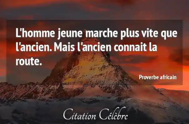 L'homme jeune marche plus vite que l'ancien. Mais l'ancien connait la route.