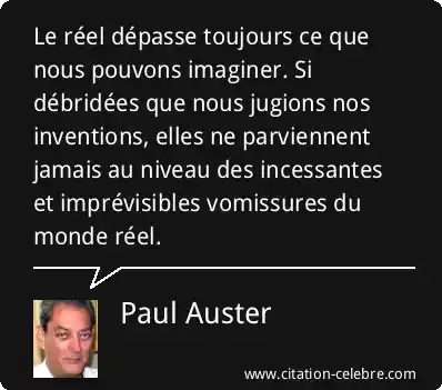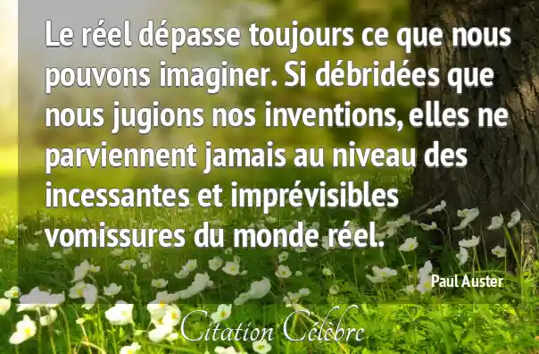 Le réel dépasse toujours ce que nous pouvons imaginer. Si débridées que nous jugions nos inventions, elles ne parviennent jamais au niveau des incessantes et imprévisibles vomissures du monde réel.