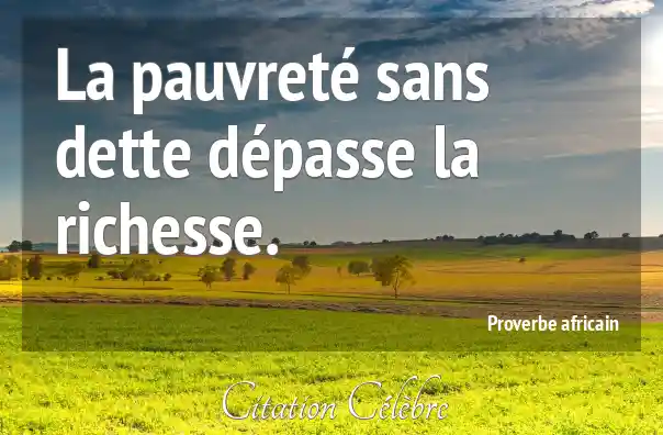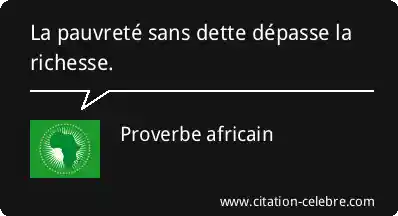 Ce proverbe africain, « La pauvreté sans dette dépasse la richesse », signifie littéralement qu'il est préférable d'être pauvre, mais libre de toute obligation financière, plutôt que d'être riche, mais accablé de dettes. La richesse ici fait référence à l'accumulation de biens matériels ou d'argent, tandis que la pauvreté est l'absence de ces biens.