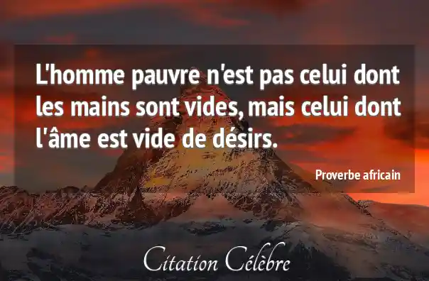 L'homme pauvre n'est pas celui dont les mains sont vides, mais celui dont l'âme est vide de désirs.