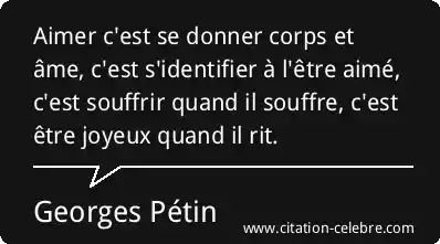 Aimer c'est se donner corps et âme, c'est s'identifier à l'être aimé, c'est souffrir quand il souffre, c'est être joyeux quand il rit.