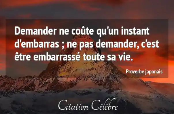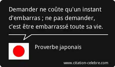 Demander ne coûte qu'un instant d'embarras ; ne pas demander, c'est être embarrassé toute sa vie.