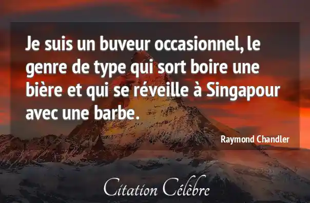 Je suis un buveur occasionnel, le genre de type qui sort boire une bière et qui se réveille à Singapour avec une barbe.