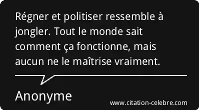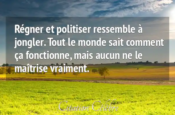 Régner et politiser ressemble à jongler. Tout le monde sait comment ça fonctionne, mais aucun ne le maîtrise vraiment.