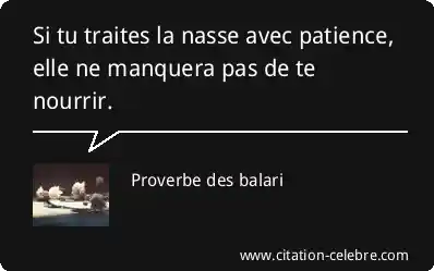 Si tu traites la nasse avec patience, elle ne manquera pas de te nourrir.