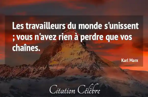 Les travailleurs du monde s'unissent ; vous n'avez rien à perdre que vos chaînes.