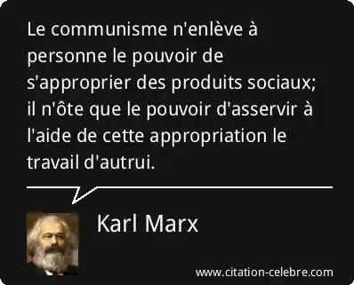 Le communisme n'enlève à personne le pouvoir de s'approprier des produits sociaux; il n'ôte que le pouvoir d'asservir à l'aide de cette appropriation le travail d'autrui.