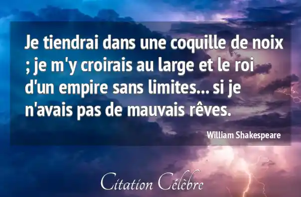 Je tiendrai dans une coquille de noix ; je m'y croirais au large et le roi d'un empire sans limites... si je n'avais pas de mauvais rêves.